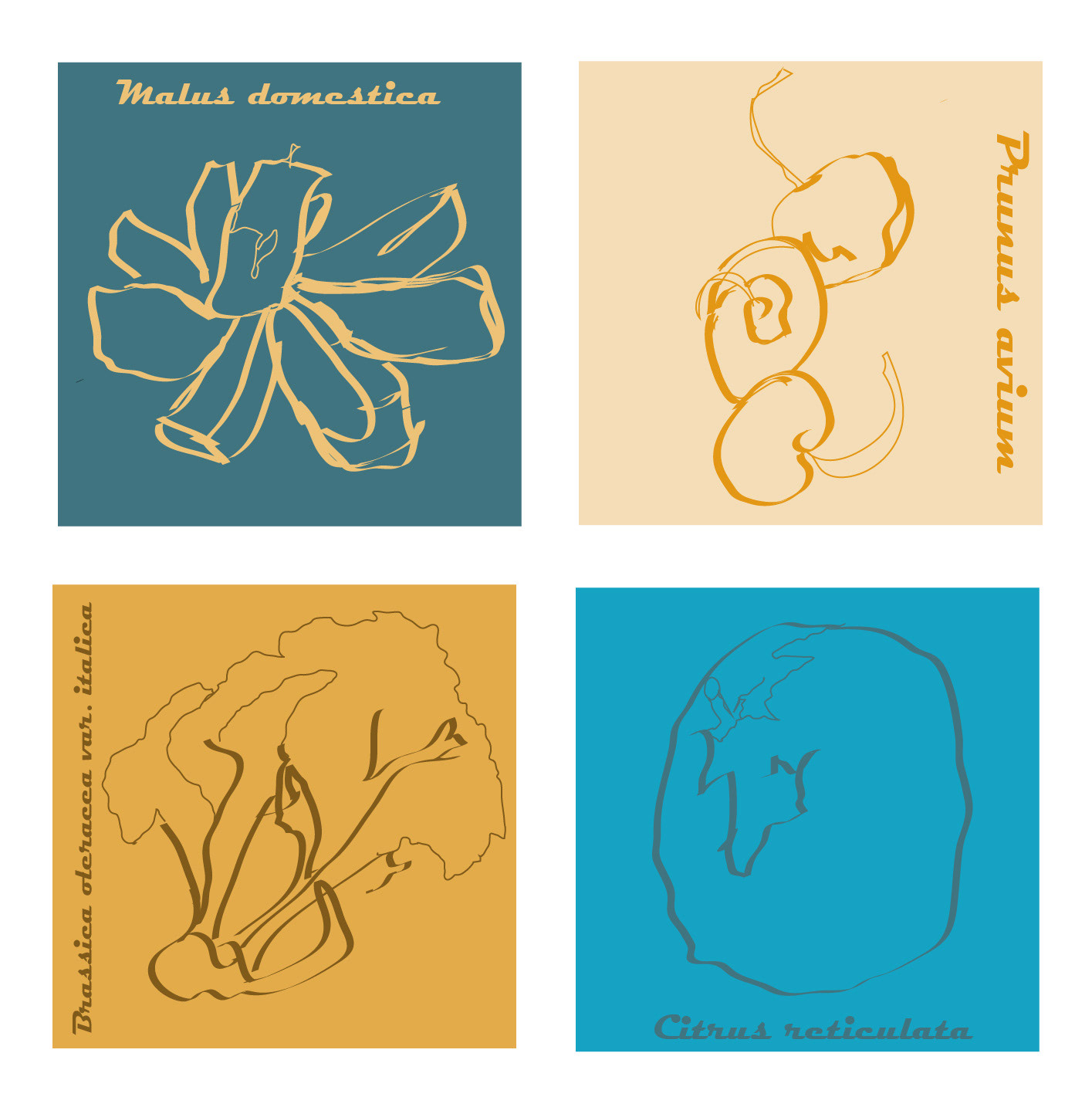 Blind Contour Fresh Produce - 4 Color Grid